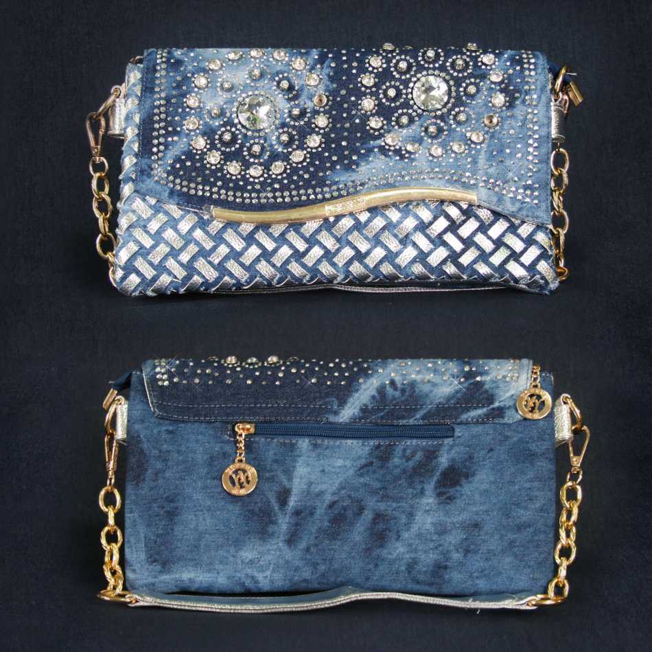 Джинс можно украсить с помощью вышивки, разнообразных нашивок, пуговиц, кнопок, аппликаций и клеевых рисунков. К сумочке можно пришить ремешок-напульсник для ношения на запястье. Застежку можно выбрать на свой вкус: молния, магниты, заклепки или пуговицы.