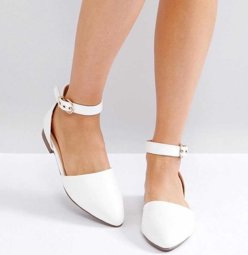 Хорошо подходят туфли из кожи, замши, изделия, обшитые декором, украшенные стразами, бусинами, блестками, атласными лентами и так далее. Классический вариант обуви – лодочки на среднем или высоком каблуке с острым или круглым мысом.