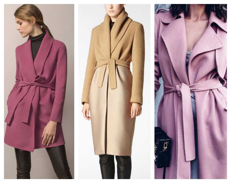 - Традиционным считается пояс, выполненный из того же материала, что и само пальто – его принято завязывать простым узлом, который располагается спереди. Но при желании можно сместить его вбок.