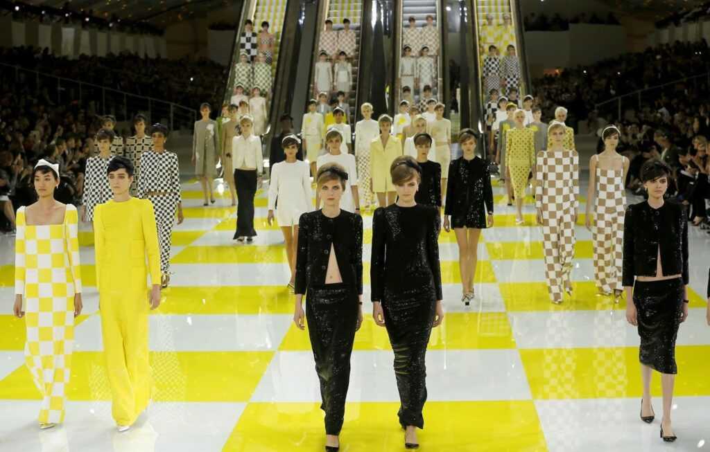 На них постоянно прокручивались изображения новой коллекции одежды Луи Виттон и улицы Нью-Йорка.Их презентовали, как «изделия будущего», но не уточнили, будут ли они представлены в оригинальных магазинах Луи Виттона.
