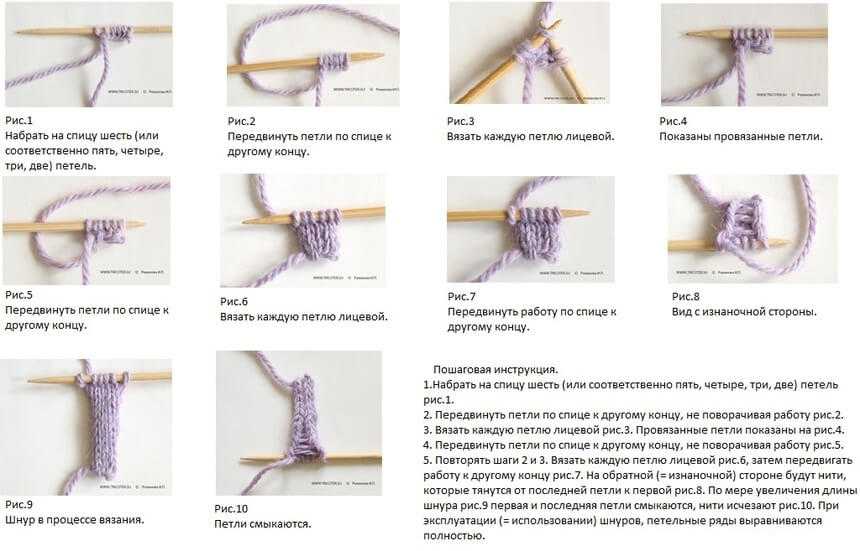 Спицами: на спицы 5 мм., пряжа в 3 нити — набрать 3 или 4 п. (в зависимости от ширины ручки), и вязать вот таким образом, не переворачивая работу, а просто передвигая её с одного конца спицы — в другой: