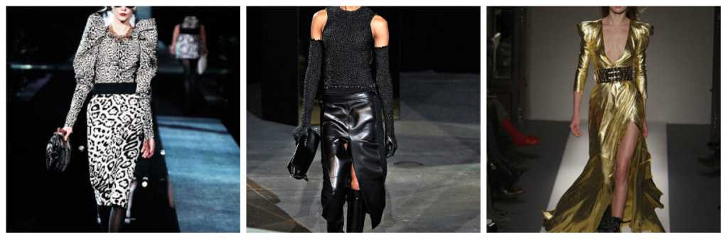 Назвать драматический стиль повседневной одеждой в любом случае не получится, несмотря на то что он очень нравится нашим женщинам из-за свойственной русскому менталитету манеры наряжаться, а не одеваться. Преимущественно этот стиль используется для праздничных и вечерних выходов. Тем не менее, выглядеть элегантно, ярко и сексуально, одеваясь в драматику, можно даже в офисе. Для этого нужно только убрать из гардероба эпатажные и экстравагантные детали: перья, мех, стразы, лаковую кожу, кричащие цвета, глубокое декольте и мини-юбки. И в результате получается желанный драматический стиль, более приглушенный и спокойный, но все такой же дорогой и сексуальный. Например, это деловой образ из белой мужской рубашки с юбкой из черной кожи или рыжей замши, синей или красной юбкой карандаш. В деловой обстановке роскошно смотрятся брючные костюмы, а также эффектные комплекты из жакетов, брюк, юбок контрастных цветов.