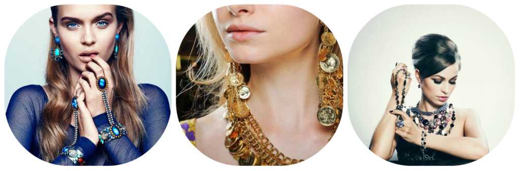 В-третьих, если вы покупаете сразу набор из нескольких украшений (например, серьги, колье и кольцо), то будьте осторожны – все сразу это можно надеть разве что по особому случаю, для повседневности это будет выглядеть слишком празднично и попросту неуместно.
