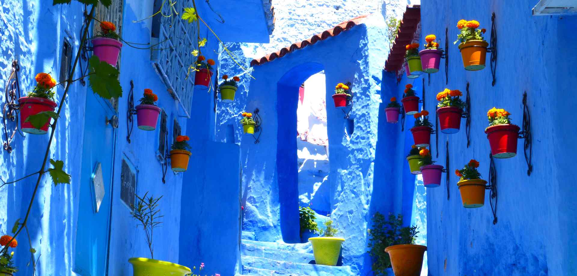 Основу цветовой гаммы составляют теплые оттенки. Марокканские интерьеры яркие и пестрые, но при этом обстановка не лишена восточного изящества. В палитре цветов превалируют красный, розовый, бордовый, винный, коралловый, фуксия, персиковый, желтый, коричневый. Влияние востока прослеживается в использовании синего, голубого, лилового, бирюзового.