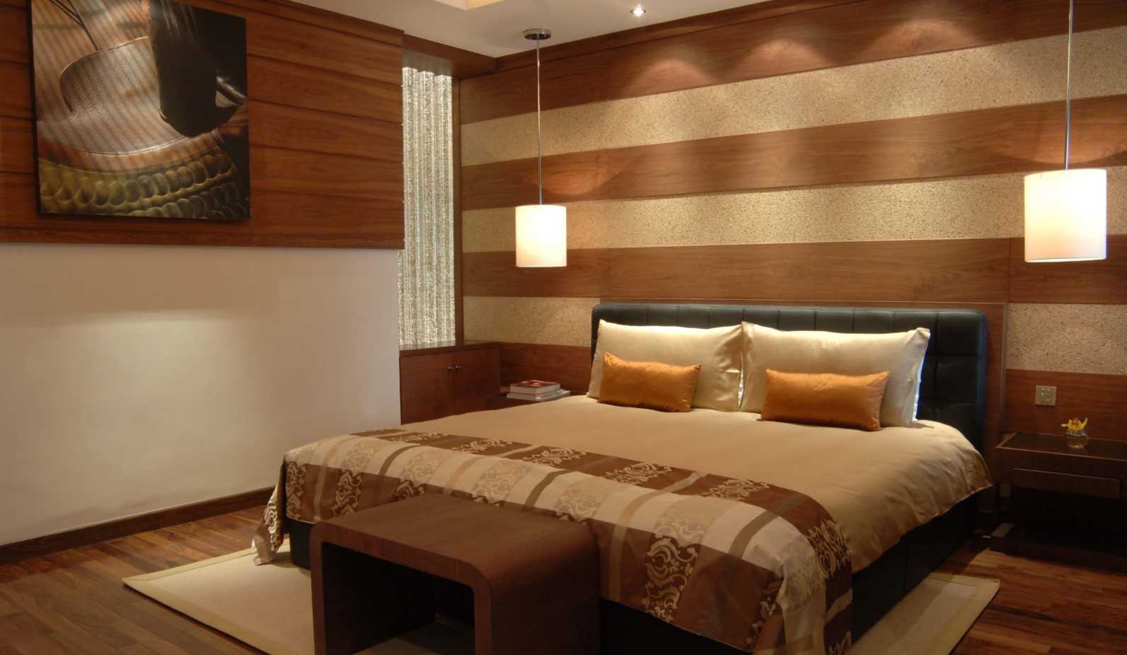 Акцентную стену у изголовья кровати можно декорировать орнаментом