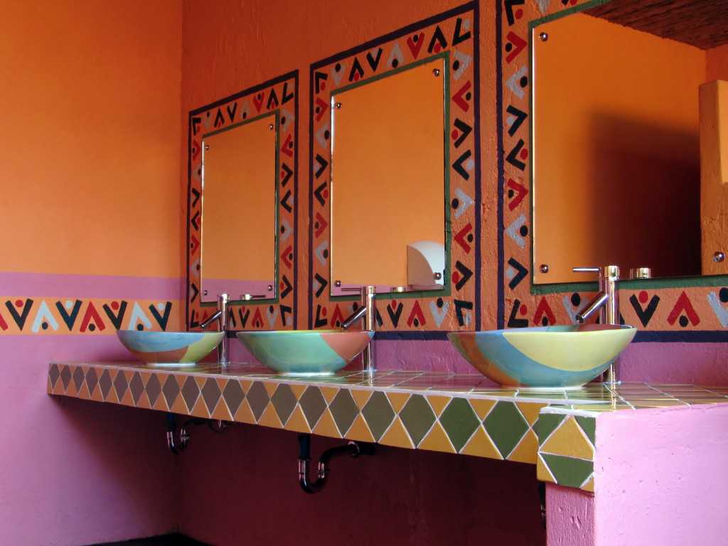 Основная беда адаптации этнических стилей к российским реалиям в том, что, как правило, в странах, где родился тот или иной стиль, выбор цветовой гаммы и материалов диктовался погодными условиями и добычей отделочных материалов национальными предприятиями. Так, в Мексике круглый год светит солнце, и любые яркие цвета смотрятся на стенах весело и жизнерадостно. В России же, где пасмурных дней гораздо больше, чем в стране текилы и сомбреро, некоторые цвета могут смотреться «грязными» или тусклыми. Поэтому прежде чем делать выбор в пользу того или иного цвета, купите баночку краски и сделайте выкрасы, а затем посмотрите, как цвет ведет себя при свете дня, в тени и при искусственном освещении.