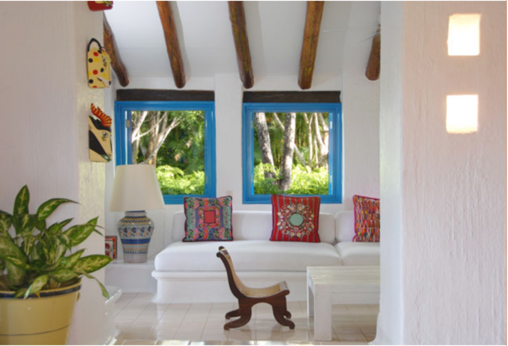 В традиционной колористике можно увидеть совершенно безумные сочетания. Мексиканцы с легкостью соединяют яркий синий с терракотовым или оранжевый с зеленым и розовым. Такие комбинации характерны не только для одежды, но и для фасадов и интерьеров зданий. Синие стены, зеленый потолок, розовая дверь и желтые оконные рамы вполне типичны в дизайне жилища.