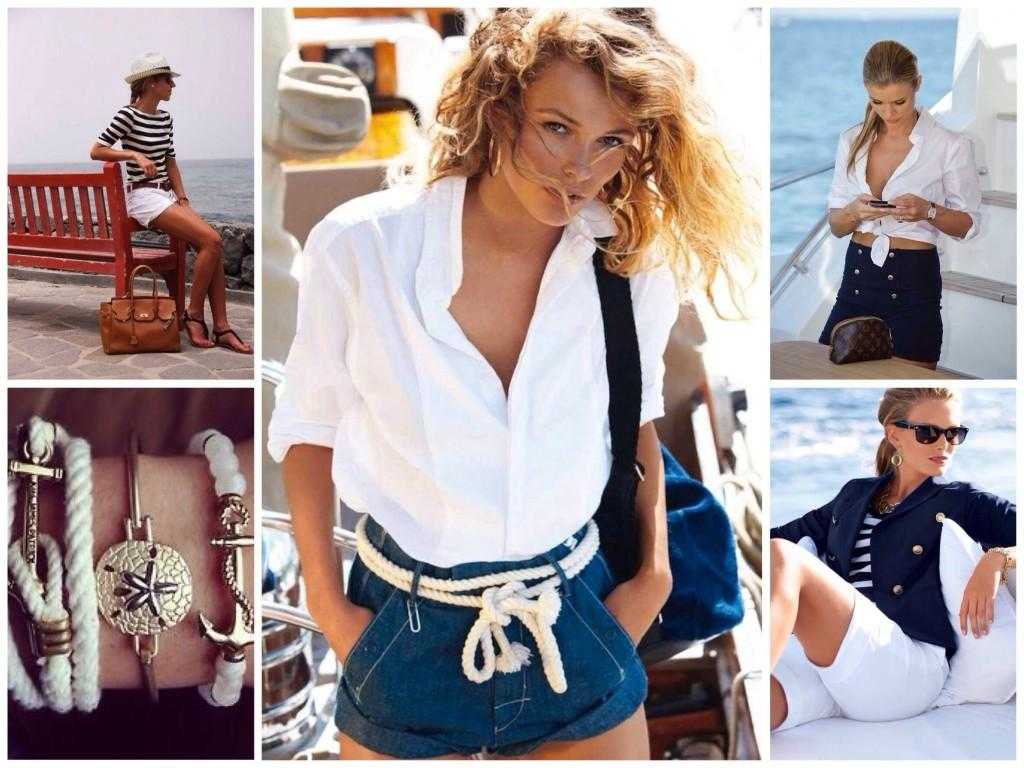 Морской стиль — это не только блузки в полоску и темно-синие брюки. Имея базовый гардероб, девушка будет выглядеть изысканно и модно, даже если будут использованы лишь некоторые элементы стиля.