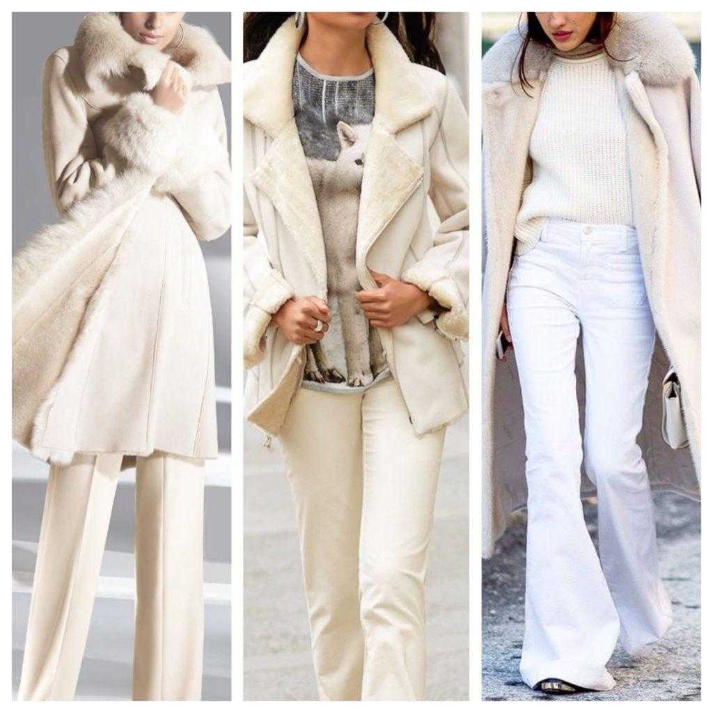 - С учётом того, что белая шубка может выступать частью праздничного вечернего наряда, в ансамбле с ней могут оказаться нарядные туфли или даже босоножки на шпильках.