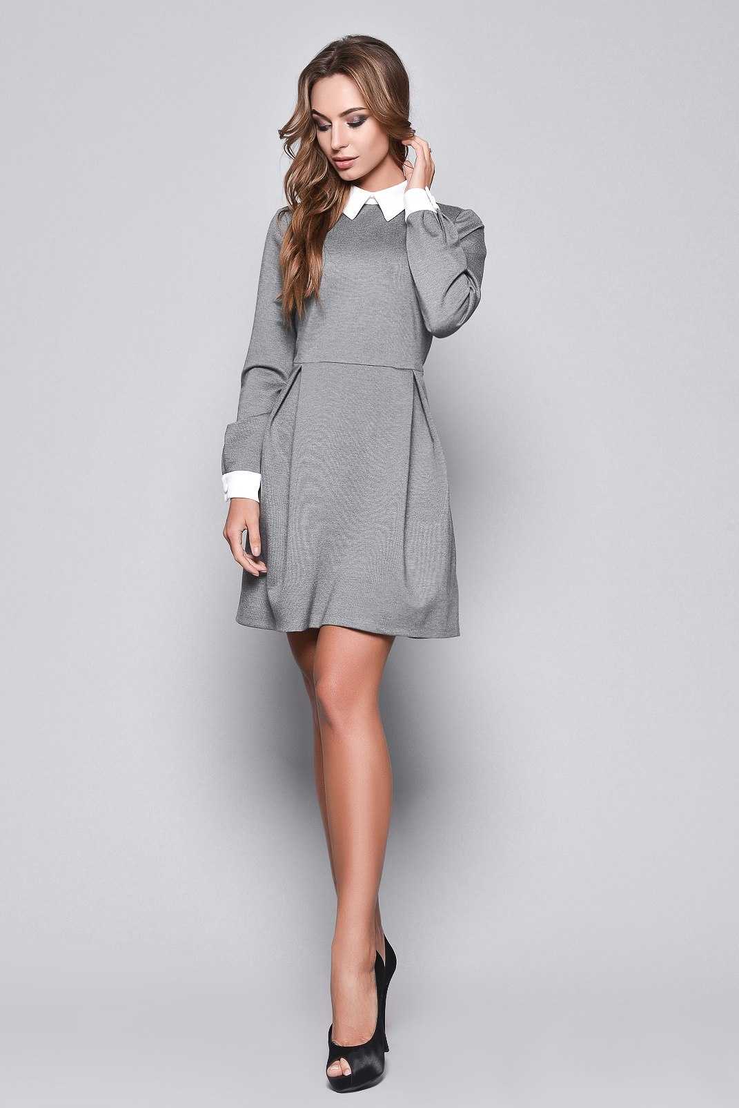 Серый цвет выглядит благородно и строго. Именно поэтому наряды серых оттенках преобладают в деловых и офисных образах. В меру сдержанный и непринужденный – именно так можно охарактеризовать этот цвет. Если ваша профессиональная деятельность связана с важными встречами и деловой обстановкой, в которой нужно выглядеть официально, тогда вам просто необходимо серое платье с белым воротничком.