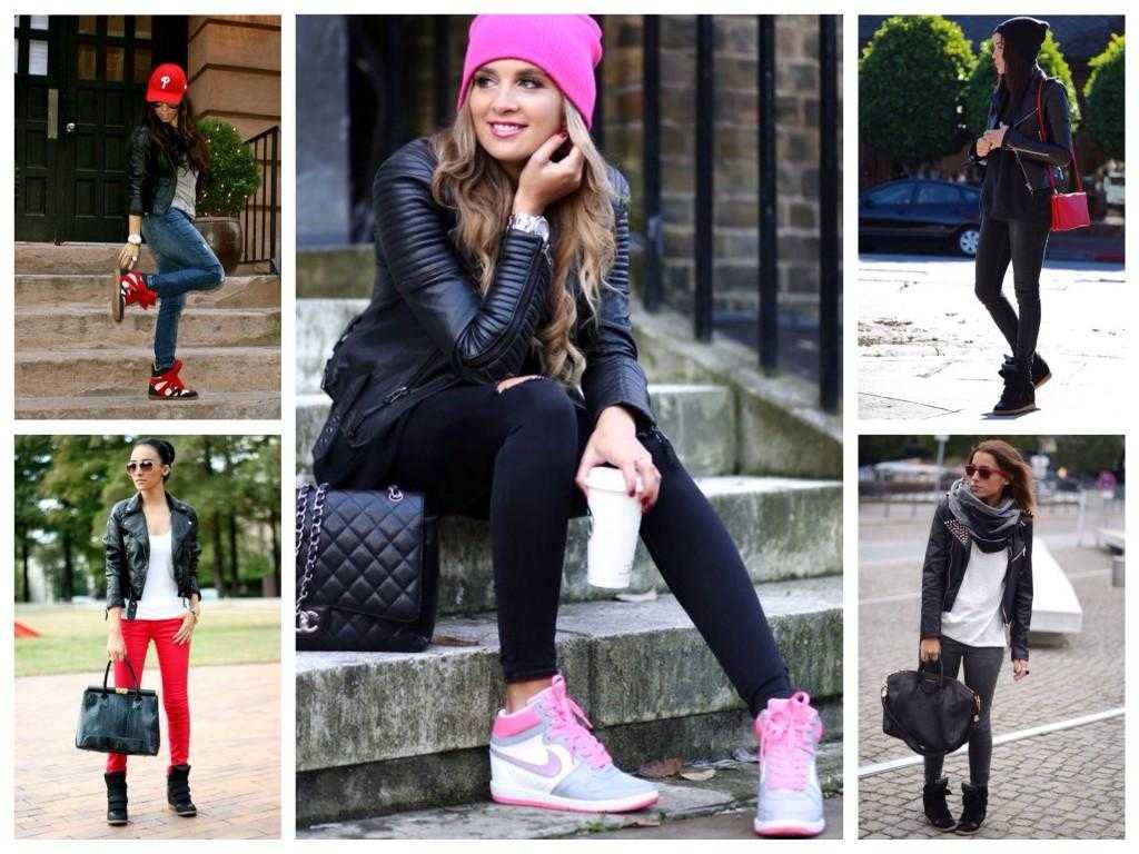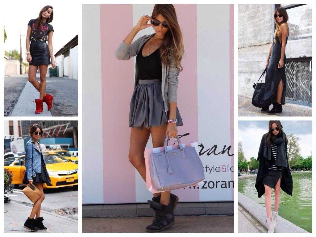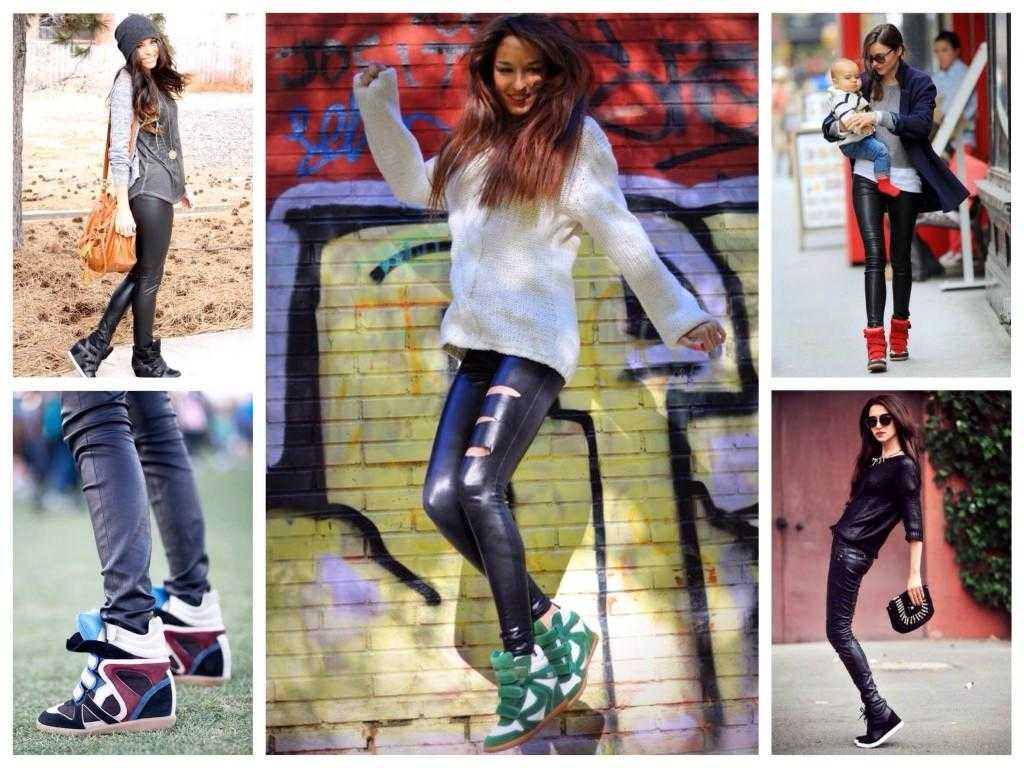 Кеды на танкетке регулярно появляются на фото в глянце. С чем носить сникерсы? С юбками и платьями, шортами и брюками, леггинсами и комбинезонами — пусть вас вдохновляют фото модных блоггеров и знаменитостей.