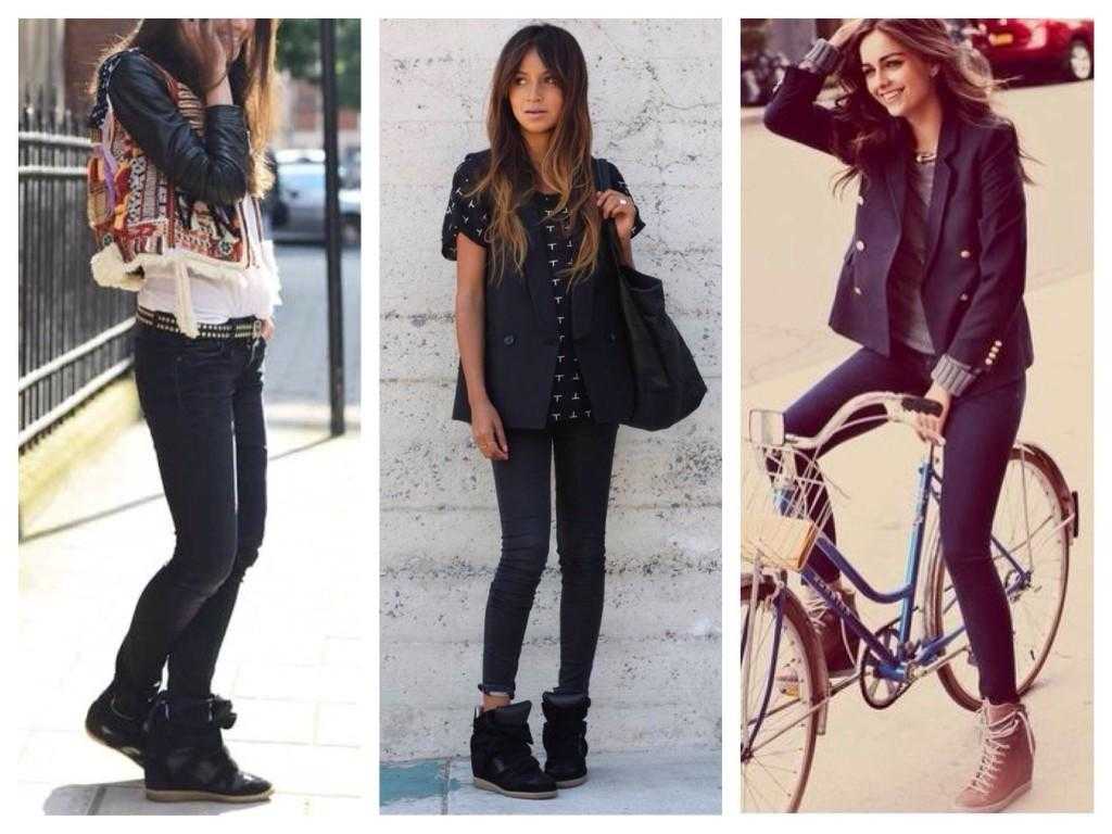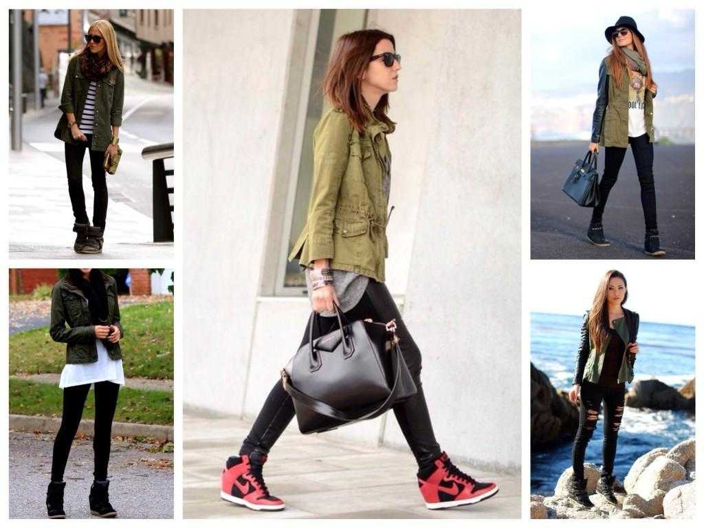 С чем носить сникерсы на танкетке? В принципе, здесь у модниц действительно широкий выбор: это мини и макси-юбки или платья узкие брюки и леггинсы, джинсы, в том числе и скинни, спортивные брюки для образов в стиле спорт-шик, а также летние сарафаны разной длины.