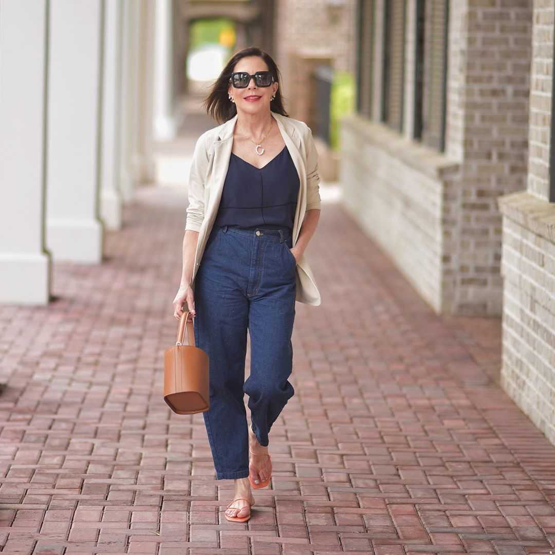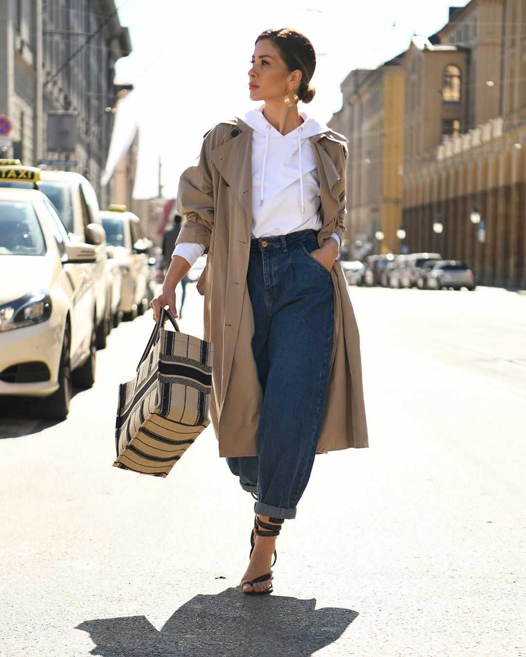 В минималистическом стиле также есть место и стильным джинсам. С помощью этого предмета гардероба можно создавать луки для повседневного использования. Для идеального аутфита стоит выбрать светлые или темные джинсы со средней посадкой. При этом на джинсах должны полностью отсутствовать какие-либо потертости, рваные детали и декор. Комбинировать джинсы можно с рубашками, блузами, пиджаками и жакетами.