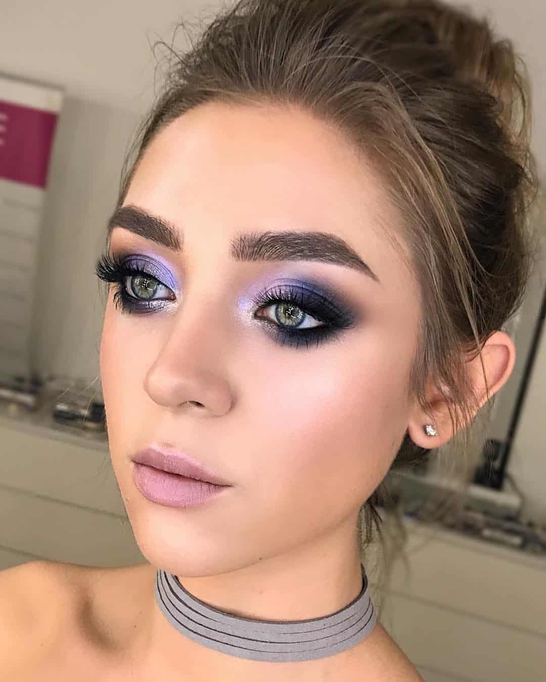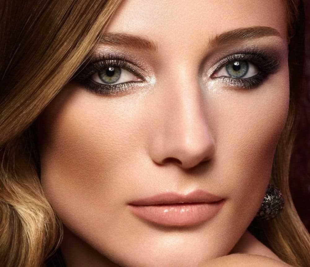 Пошаговый праздничный макияж для серо-голубых глаз: