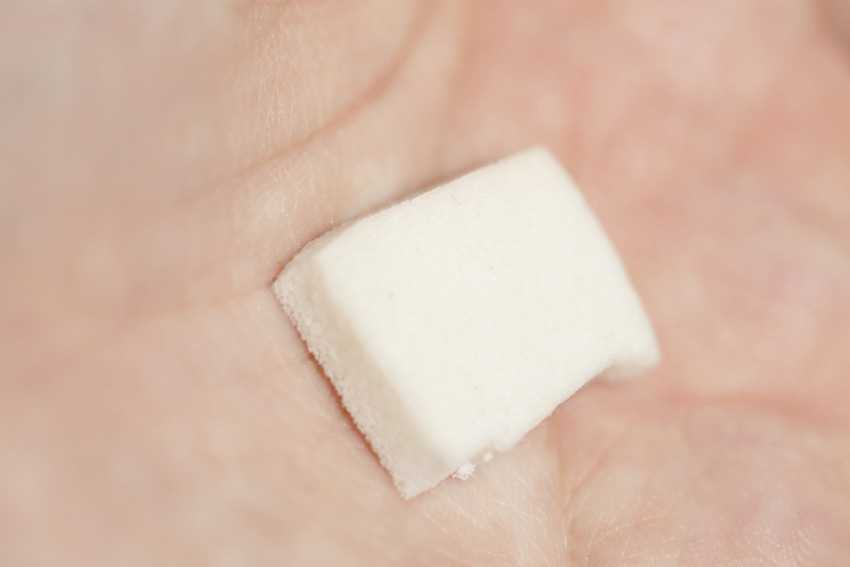 - Приготовить новую губку (обычную для посуды), разрезать на полоски по ширине ногтевой пластины.