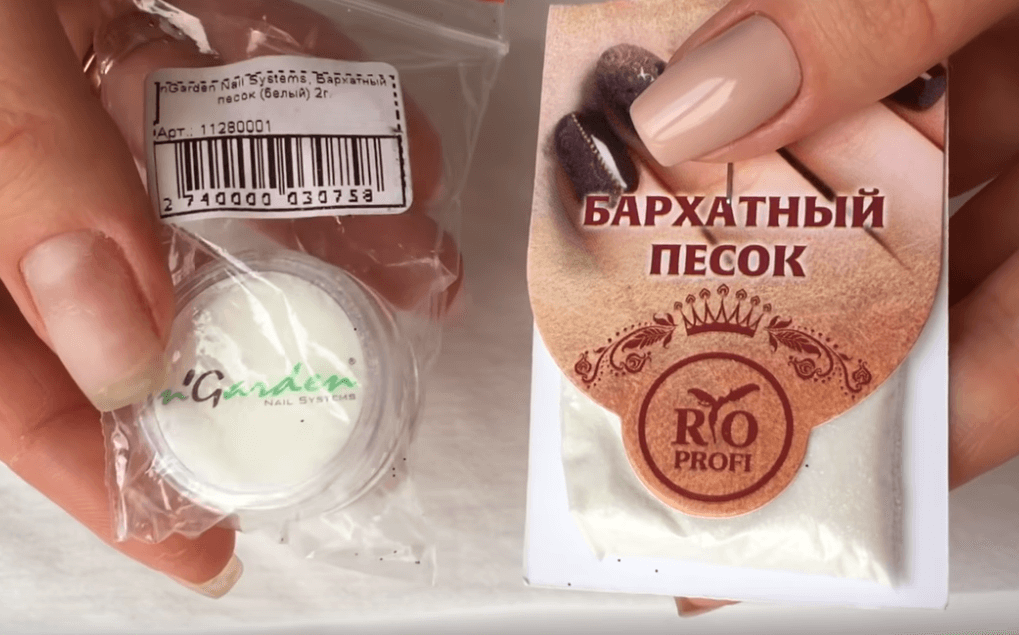 Песок может быть крупной и мелкой фракции. Крупный похож на шарики и обычно используется для выделения одного-двух ногтей. Работать с ним сложнее, чем с песком мелких фракций.