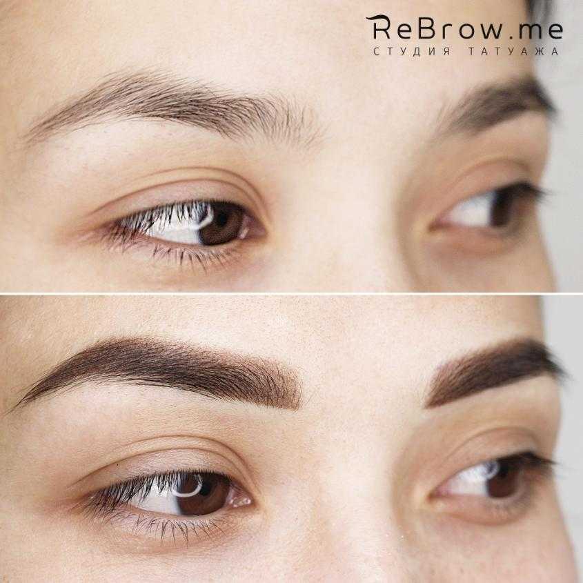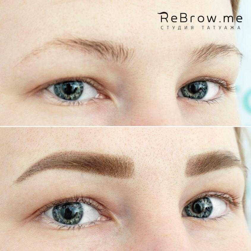 При выполнении техники с растушевкой пигмент добавляют на свободные от волосков участки. Регенерация длится 10-14 дней.