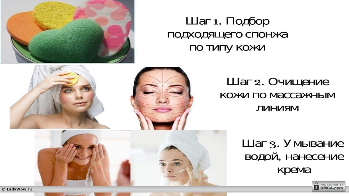 Для достижения максимального эффекта от очищения лица нужно придерживаться особого порядка применения губок.