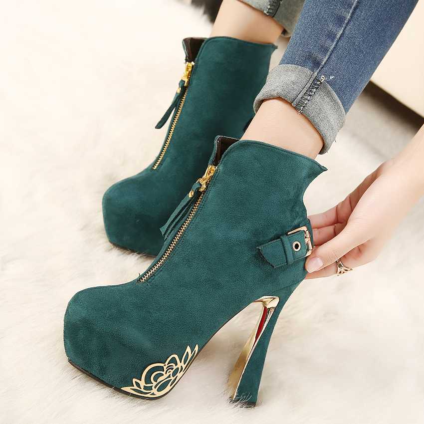 Модели с вертикальной молнией подойдут женщинам с фигурой типа треугольник. Хорошим сочетанием такой обуви будет комбинация с простой неброской одеждой.