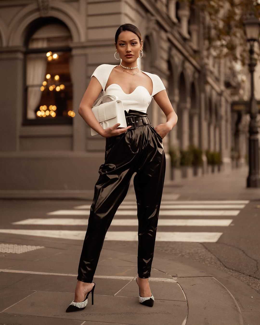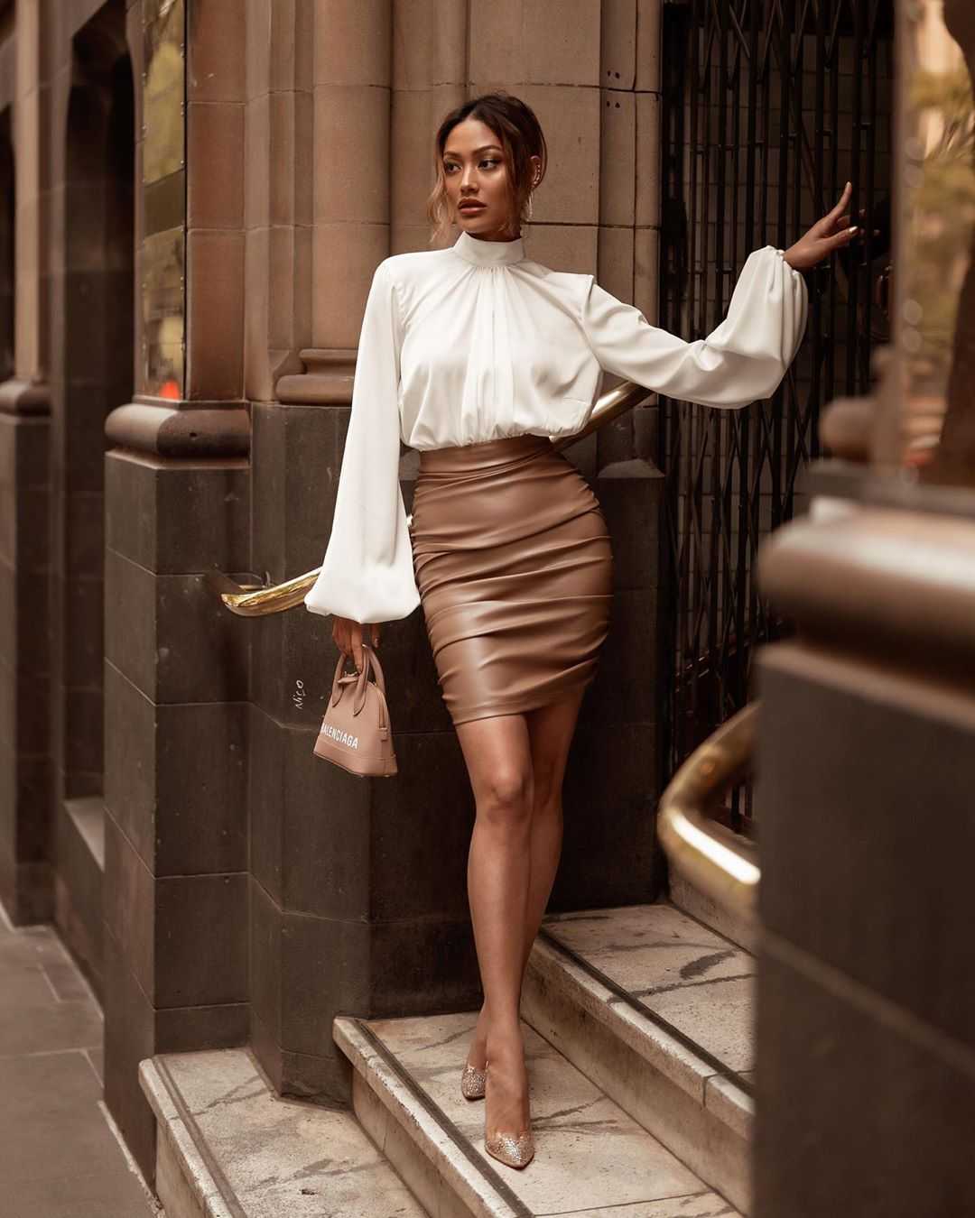 Но существуют и идеальные комбинации. Это красивая юбка-карандаш, правильные брюки, классические шорты или замшевая куртка. Чтобы оттенить фактуру материала, можно добавить немного кожаных деталей. Игра с цветами и фактурами позволяет найти интересные решения для повседневных луков.