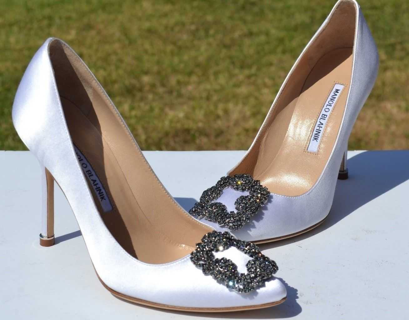 - Manolo Blahnik выпускают удобную обувь, украшенную брошками или другими дизайнерскими аксессуарами. Каблук не настолько высокий, как у предыдущего бренда, однако такой же тонкий и утонченный.