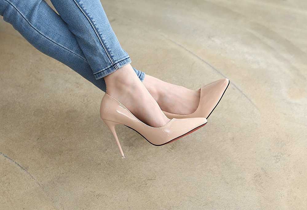 Для делового стиля лучше всего выбрать лаковые туфли бежевого или нюдового оттенка, также можно выбирать коричневую или темно-синюю пару, а вот черная глянцевая обувь в офисе – это проявление плохого вкуса.
