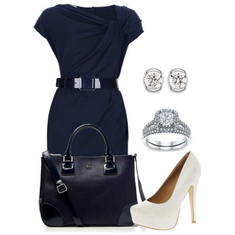 Чисто белое платье по фигуре также великолепно дополнят синие замшевые туфли на каблуке. А чтобы облик казался логически завершенным в тон туфлям можно подобрать часы, бусы, кольца или сумочку.