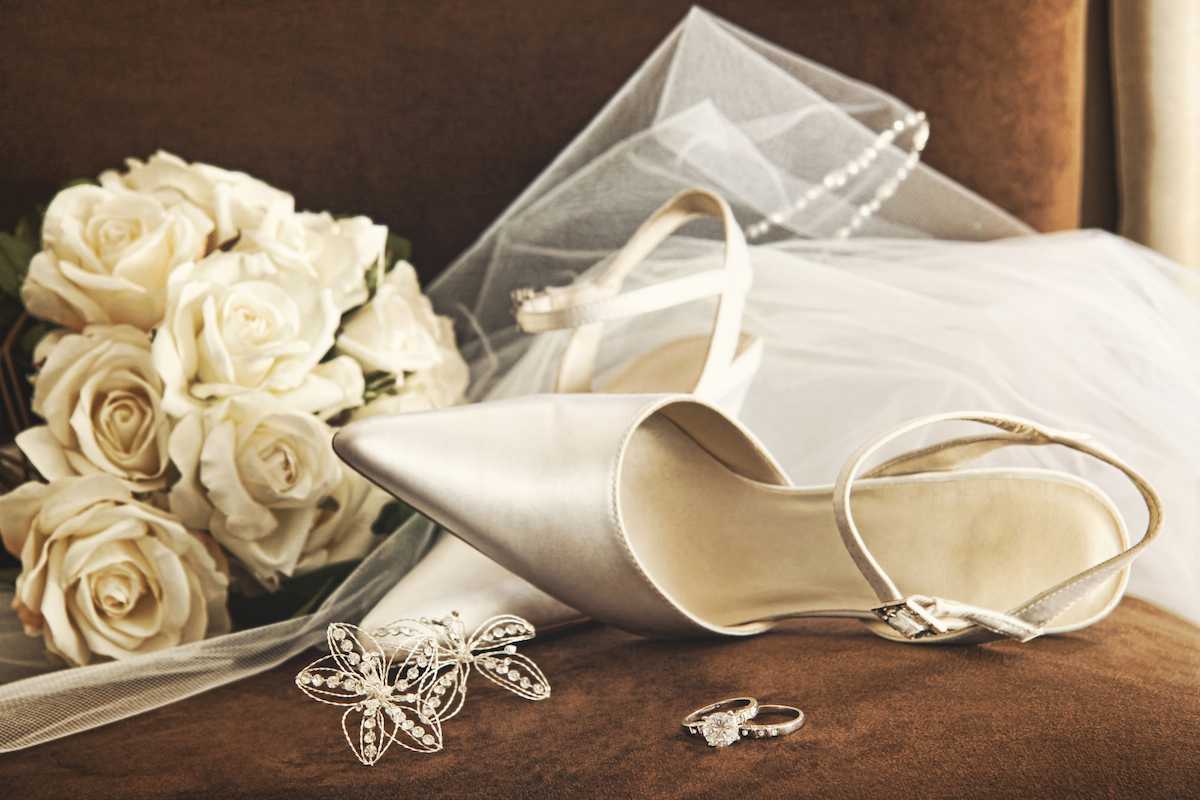 Важно: часто девушки выбирают обувь на высоком каблуке только потому, что иначе подол взятого напрокат (или купленного с намерением потом продать) платья волочится по земле. Это неудачное решение, лучше подобрать юбку изнутри временными закрепами так, чтобы впоследствии было легко их распустить.. Если свадьба будет происходить на пляже, можно вовсе отказаться от обуви, выбрав взамен оригинальные украшения для ног