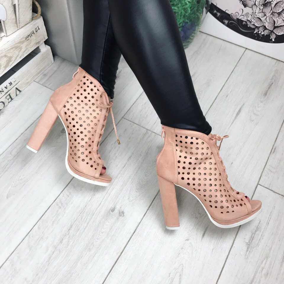 - Летом можно позволить себе текстильные укороченные сапоги из натурального хлопка, замши. Многие модели полуоткрытые. Носок, пятка или подъем оголяются, благодаря чему женщинам в таких ботинках не жарко. Любая модница знает, какие ботильоны в моде в теплое время года – в них обязательно есть перфорация на боковой или верхней стороне.