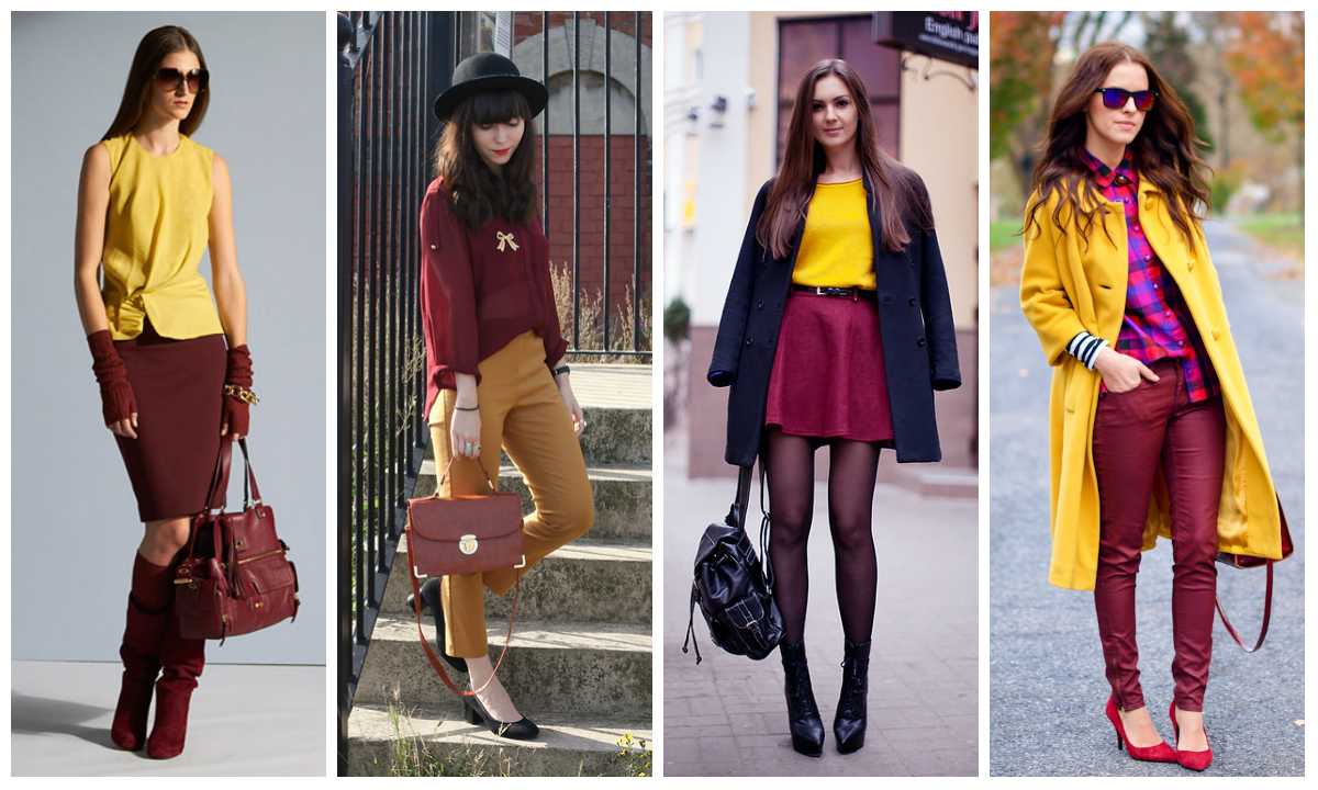 Подойти могут и другие глубокие винные оттенки. Они смотрятся с горчичным оригинальнее и немного ярче, чем стандартные коричневые. Детали и тех, и тех оттенков могут быть дополнением и в бежево-горчичном ансамбле, все эти цвета теплые и имеют что-то общее, но в то же время нисколько не сливаются и выглядят очень стильно и эффектно.