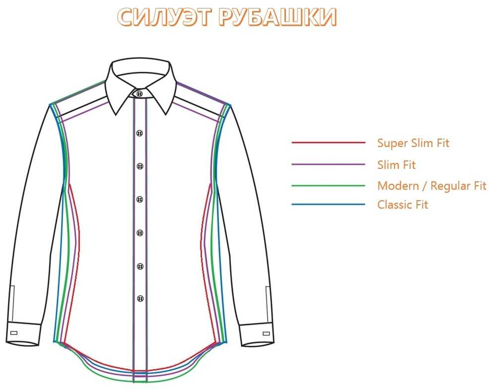 Четких правил, регламентирующих одевать только такой стиль рубашки и никакой другой –нет. Все зависит от вашего вкуса, телосложения, желаемого образа. Поэтому сегодня мы рассмотрим 4 самых популярных стиля (можно назвать кроем), которые предлагают производители сегодня: классический силуэт (Classic Fit), полуприлегающий силуэт (Slim Fit), прилегающий силуэт (Super Slim Fit), приталенный силуэт (The Modern / Regular Fit).