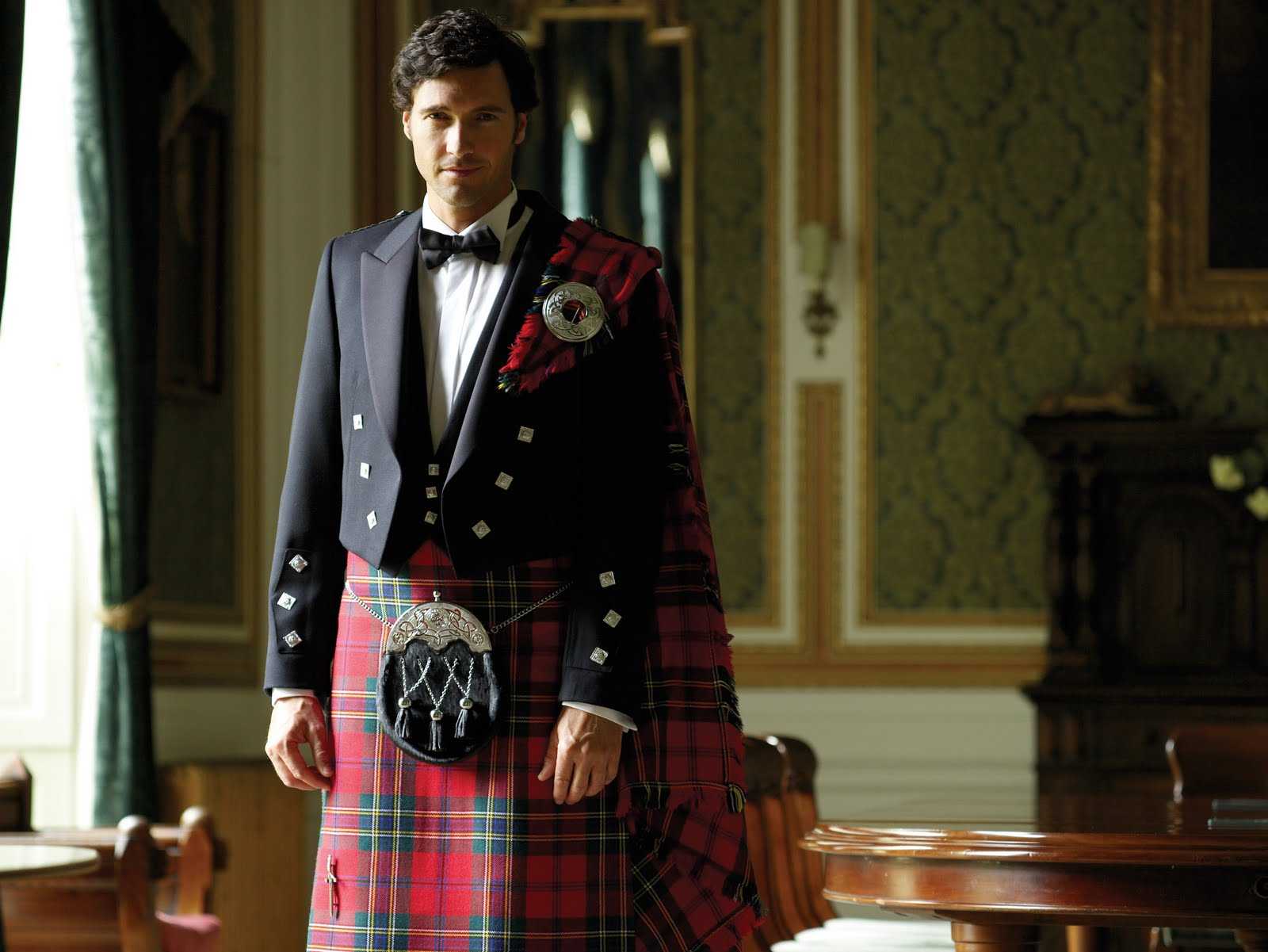 Национальная одежда мужчин в Шотландии – это не только килт и тартан. Их дополняют различные детали, что все вместе и составляет национальный шотландский костюм.