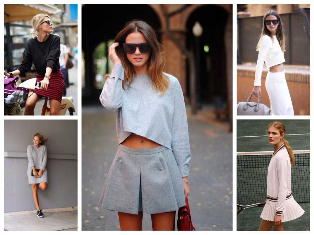 — Не стоит отказываться от юбок: носит теннисные платья и юбки, облегающие юбки из однотонного текстиля — короткие или длиной до колена.