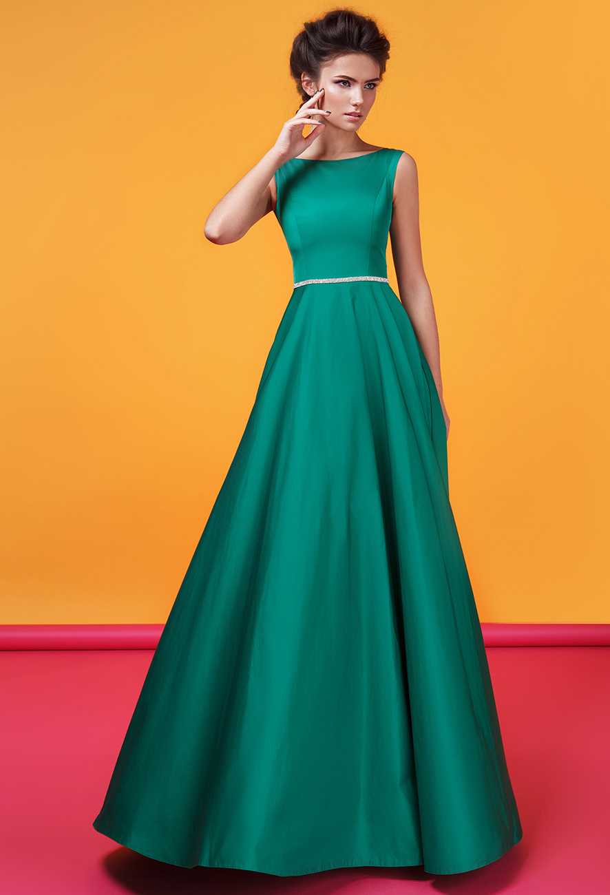 На фото видно, что зачастую такие наряды имеют цельнокроеную форму и мягкую либо жесткую юбку. Обычно наряды шьют без рукава или с коротким рукавом, длинные рукава попадаются реже. Воротники платья А-силуэта отличаются разнообразием. Это и воротник-стойка, и воротник-акула, и отложный.