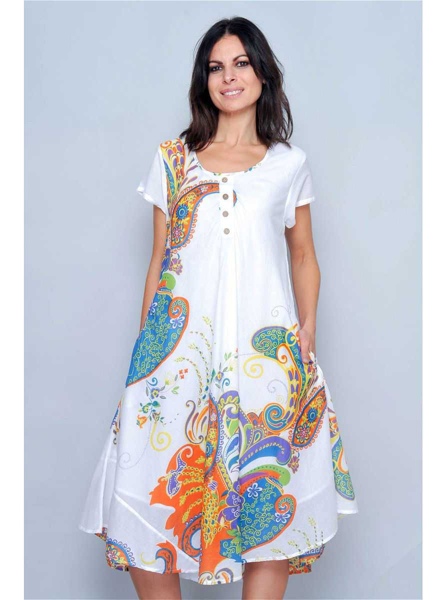 Отсутствующая линия талии и расширяющийся низ делают платье похожим на мешок. Такие модели отлично подходят для лета.