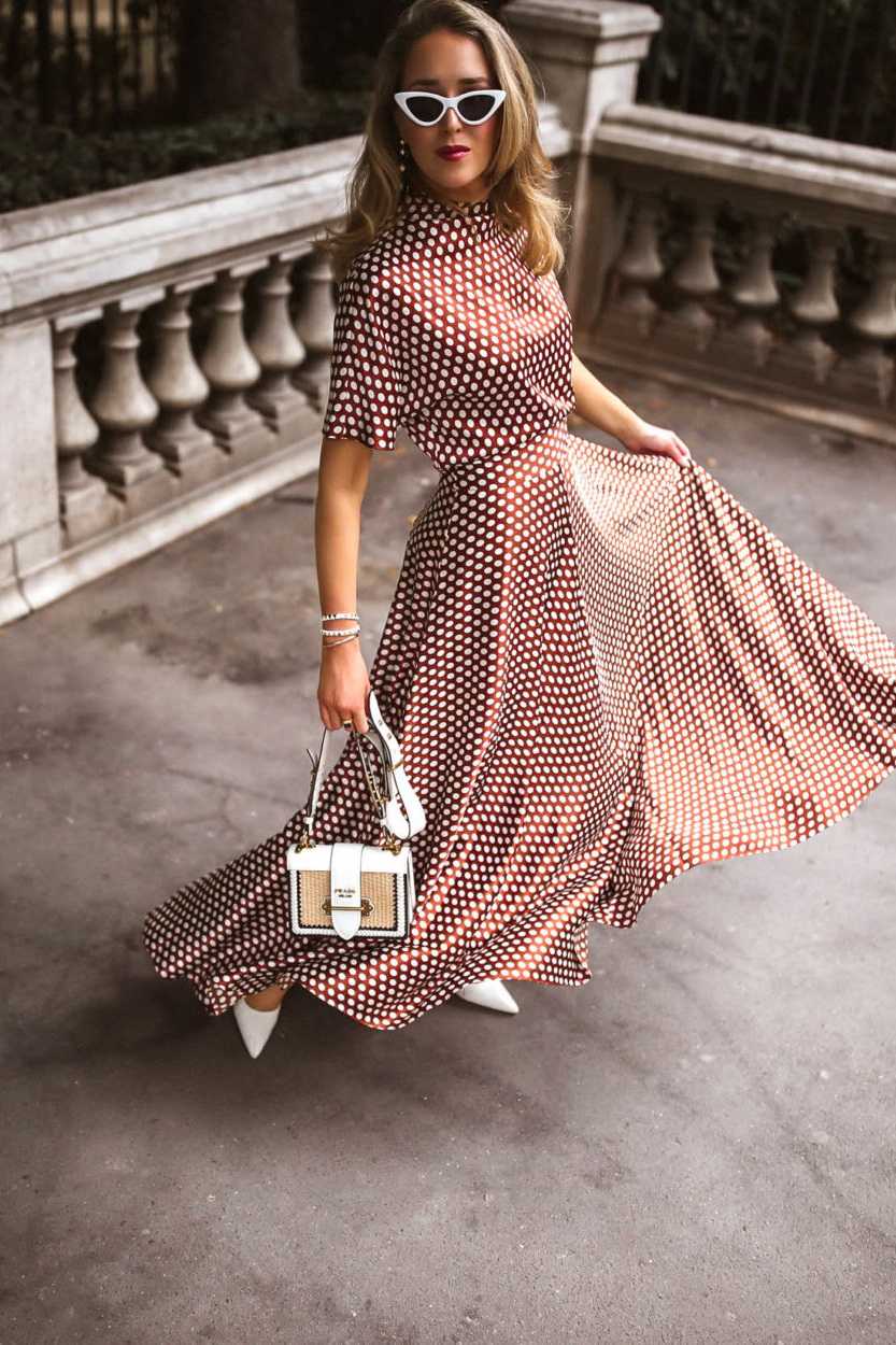 Такая вещь успела завоевать миллионы женских сердец. Для создания контраста подойдёт верхняя одежда коричневой гаммы, серых, молочных и бежевых оттенков. Сумка с бахромой и туфли на устойчивом каблуке станут отличным дополнением к образу.