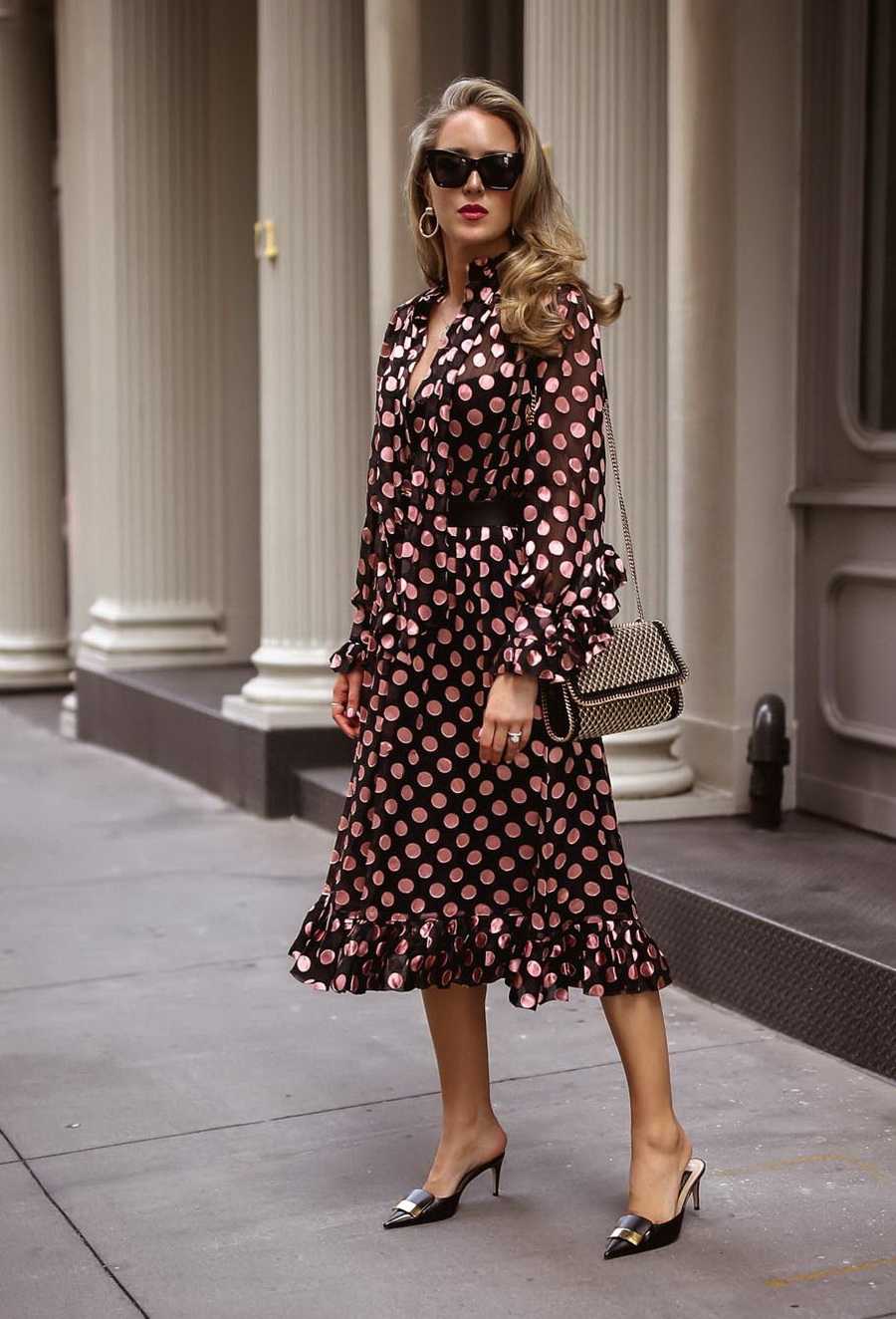 Следите за сочетанием цветов, фактур, тканей и рисунков, когда будете подбирать туфли под платье.
