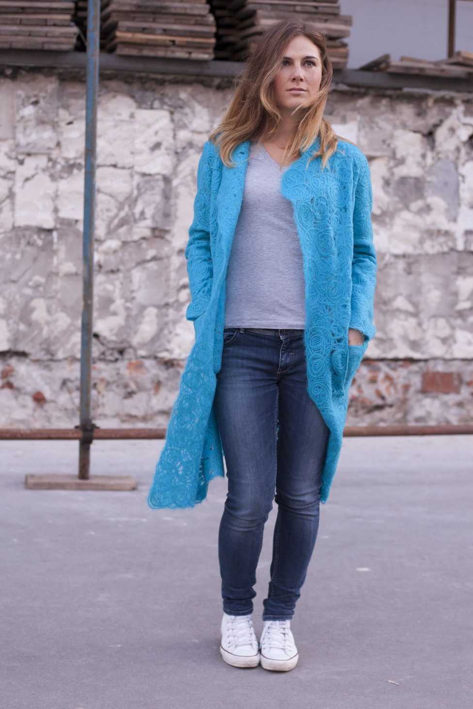 Синяя расцветка придаст оригинальности любому образу. Такая одежда замечательно сочетается с джинсами такого же оттенка, с белой рубашкой или платьем
