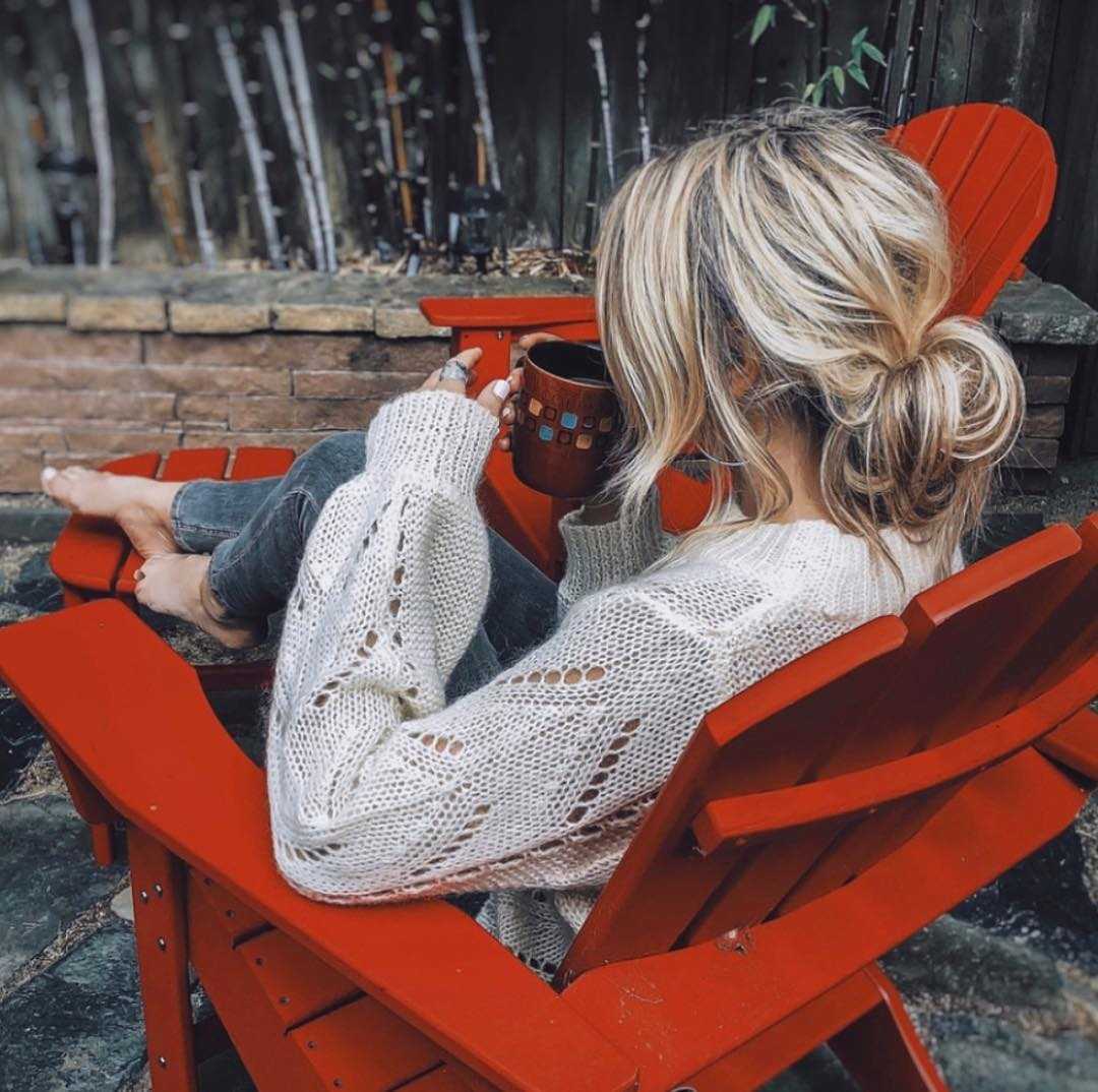 Вязаная модель отлично подчеркнет изящность своей хозяйки. Чтобы создать неформальный лук, следует остановиться на удобных джинсовых брюках (к примеру, на «бойфрендах», которые сегодня в моде). Из обуви подойдут туфли на устойчивом каблуке, кроссовки, ботинки.