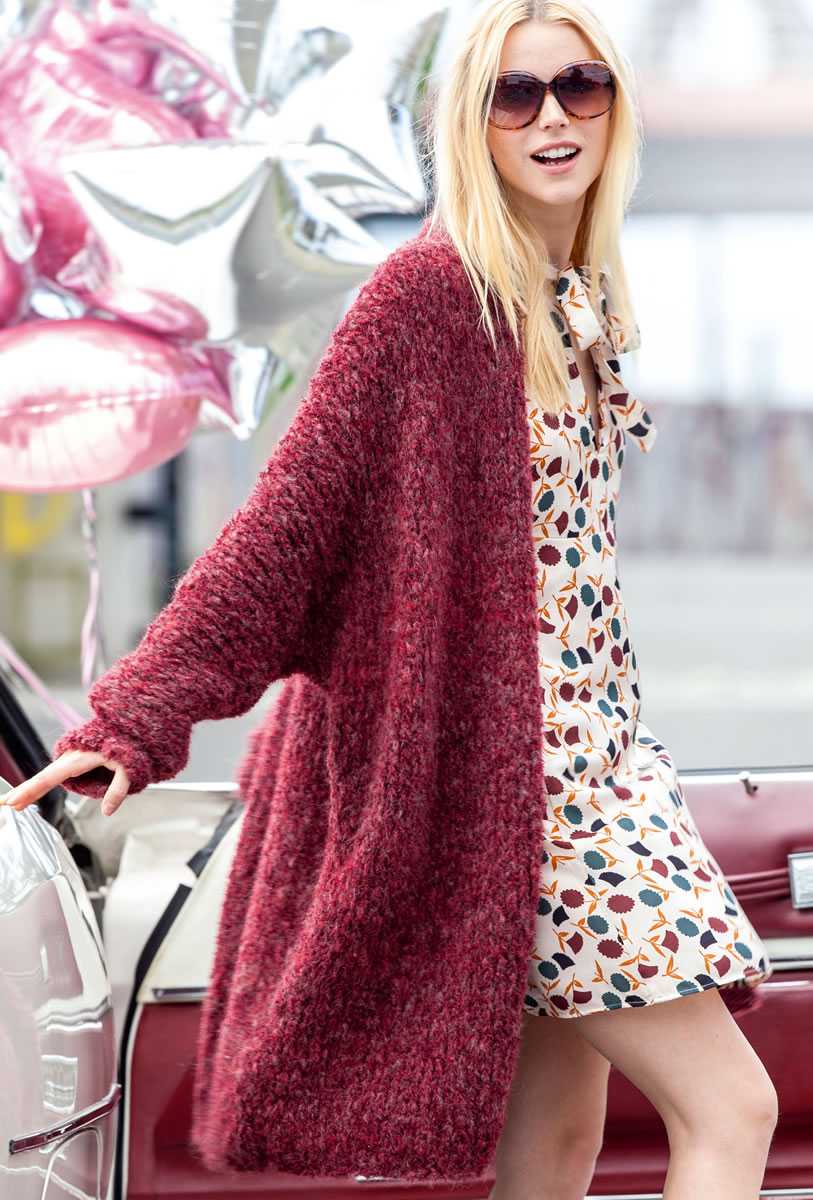 В стиле Лало. Кардиган в стиле Лало – это объемная модель с большими косами. Такую модель рекомендуется носить с джинсами скинни или зауженными брюками. На ноги можно надеть ботинки, кеды или ботильоны.