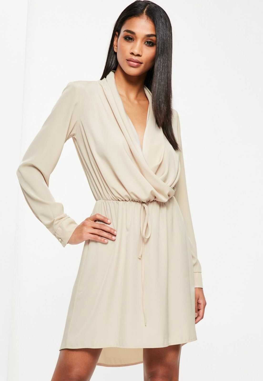 Ансамбли в бежевой гамме весьма разнообразны. Это могут быть и строгие деловые комплекты, и облегающее провокационное платье, в котором девушка может выглядеть почти раздетой, особенно если цвет ткани повторяет цвет кожи.