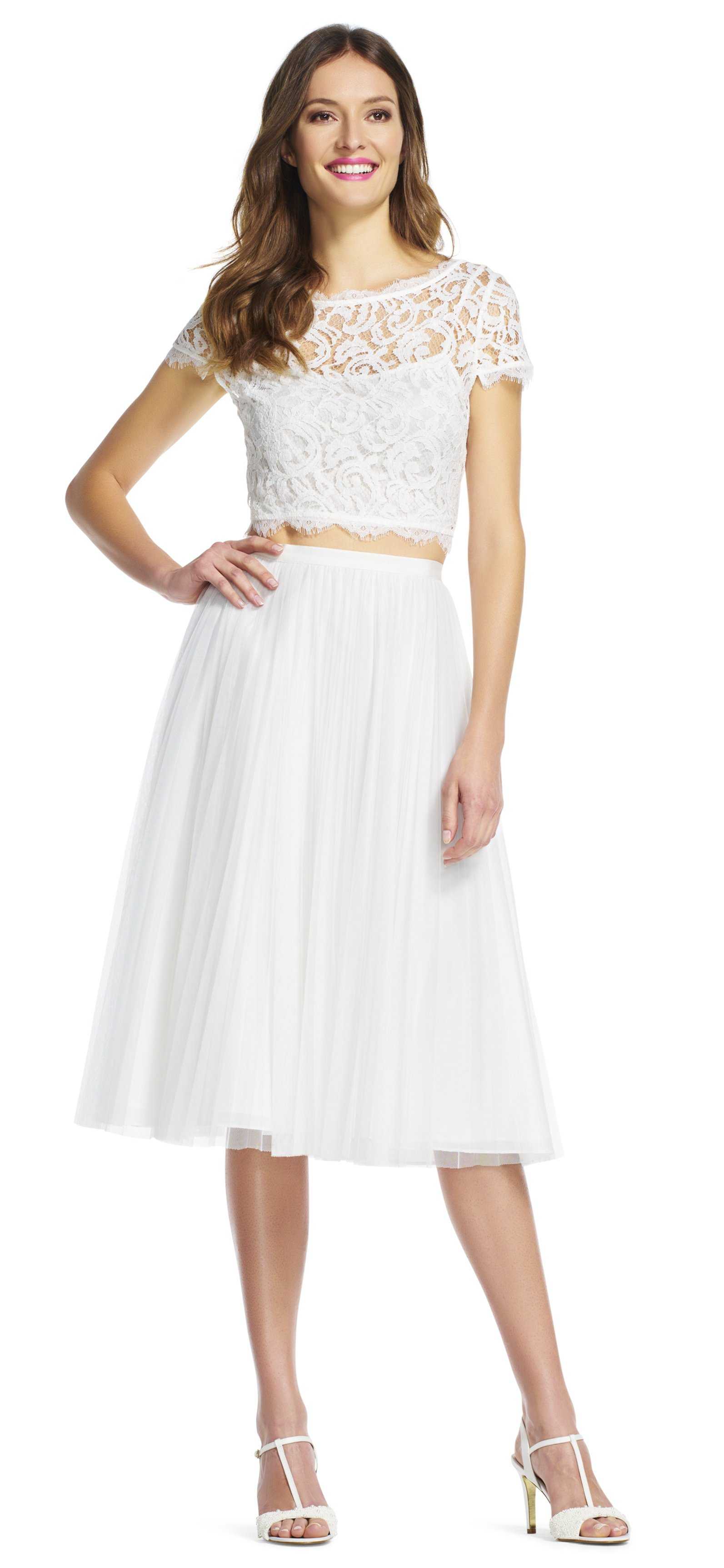 Элегантность невесты подчеркнет блузка, в которой комбинируются прозрачная и плотная ткани. Главное — не показаться вульгарной и соблюсти меру. Например, можно открыть зону декольте или спину. Естественно, такой наряд подойдет только девушкам с хорошей фигурой. Отлично выглядят вставки из гипюра или кружев.