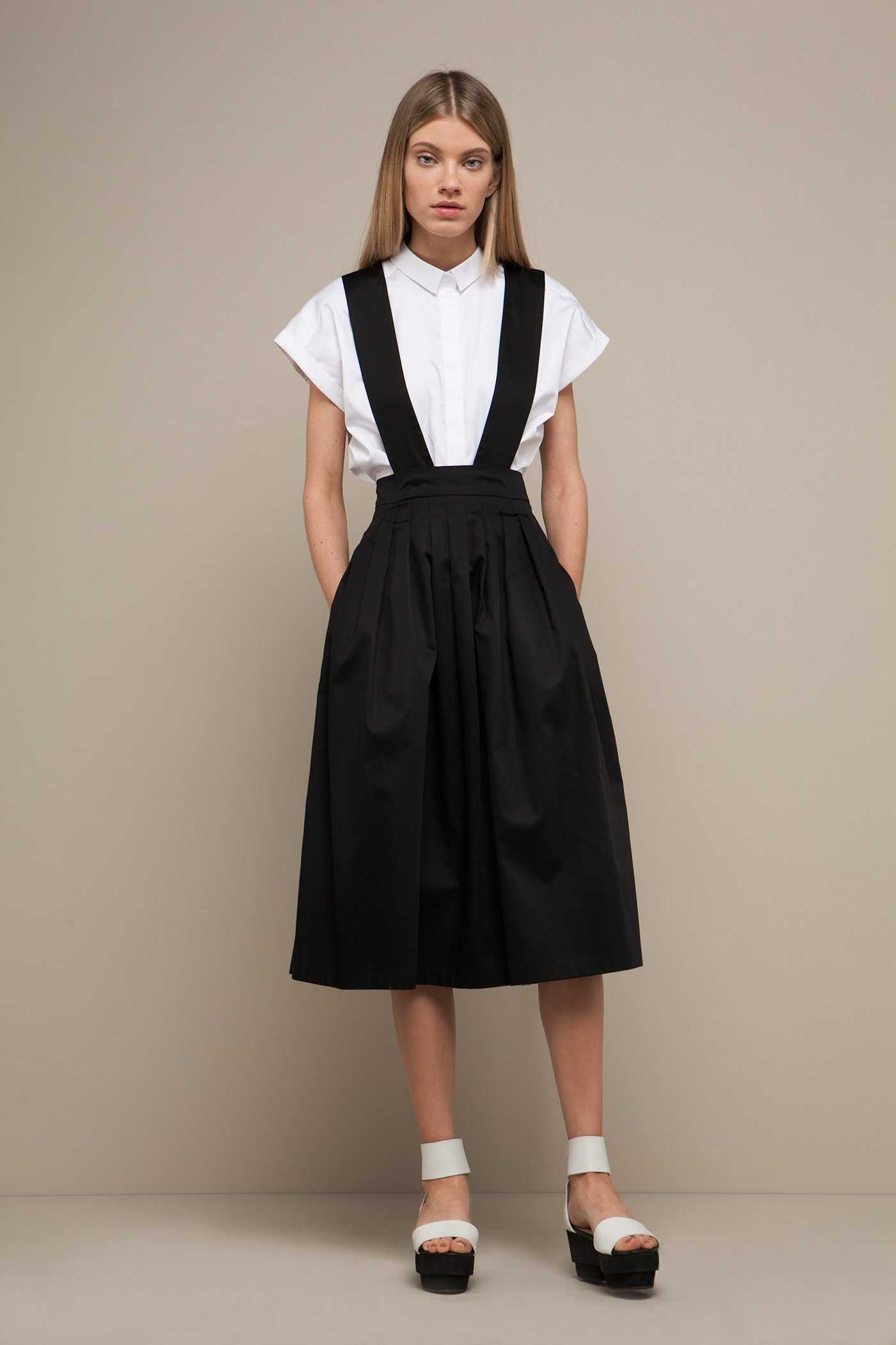 - белая блузка в сочетании с чёрным платьем бельевого типа (комбинация). Образ актуальный и дерзкий. Классически правильная рубашка надевается вместе с сексуальной и вызывающей вещью. Абсурдность сочетания на пике моды;