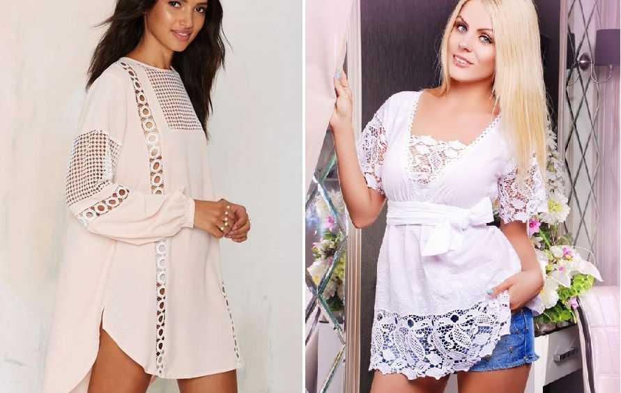 В некоторых фасонах предусмотрен тонкий ремешок, чтобы подчеркнуть линию талии. Чтобы бедра не выглядели шире, блузка из кружева должна быть на 15 см ниже линии талии.