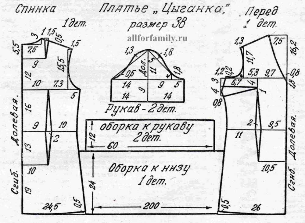 Первый этап. Нужно снять мерки. Для этого замеряем окружность бёдер и талии. Выбираем необходимую длину изделия. После того, как мерки в сантиметрах будут получены, можно переходить к построению самой выкройки цыганской юбки. Данный этап является не таким уж и сложным, как может казаться сперва. Для создания шаблона лучше всего подойдёт пергаментная бумага либо же калька. К полученным меркам обхвата бедер нужно прибавить пять сантиметров. В результате получится круг. Сам чертёж принято строить из двух половинок-полукругов. Можно воспользоваться и готовой выкройкой юбки-солнце.