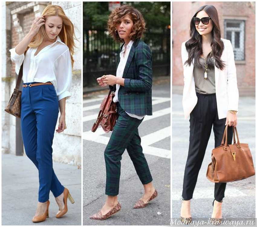 В любом случае, для работы стоит выбрать черный, темно-синий, темно-серый цвет для верха и бежевый, белый, серый цвет для низа, если это позволяют рабочие правила. Плюс такие вещи можно использовать и вне работы благодаря универсальности. Из обуви подойдут туфли-лодочки, ботильоны высотой не более чем по косточку и балетки.