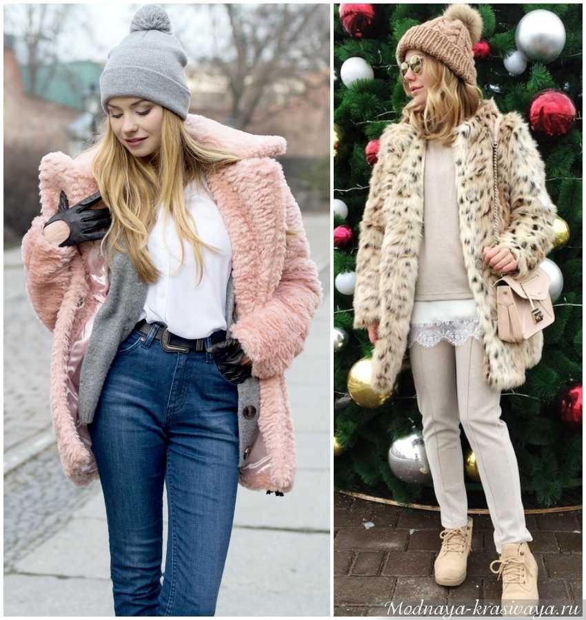 - Модели из комбинированных материалов также будут уместны, например, из меха и кожи, где из последней выполнены рукава.