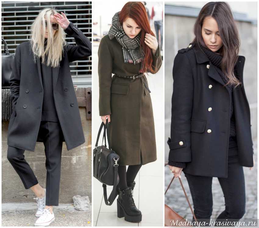 - Не стоит прибегать к длинным пальто, оптимальной длиной будет вариант чуть ниже колена.