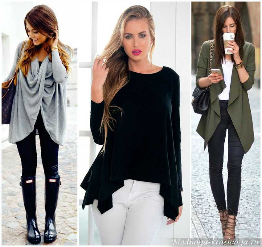 | Леггинсы, обтягивающие рейтузы и т. д. | Выбирайте вещи, которые добавляют объема верхней части тела и подчеркивают плечи. |