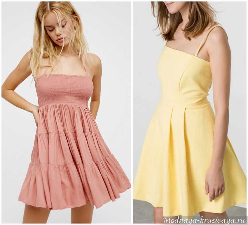 - платье с узкими вырезами и лямками, расположенными близко к шее;
